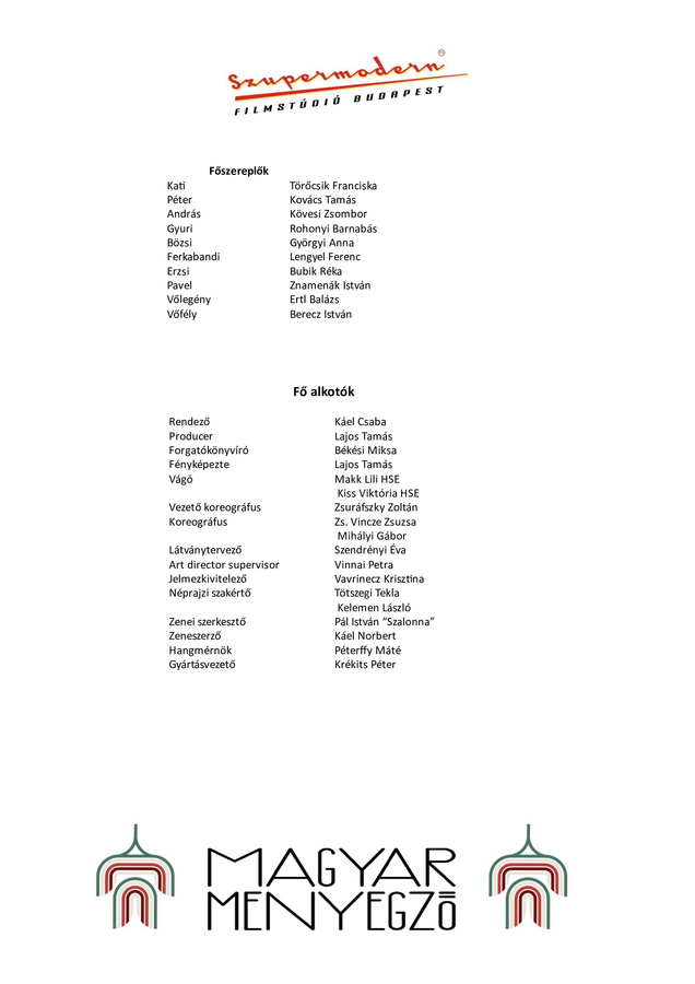 A zenés, táncos játékfilm főbb szerepeit Törőcsik Franciska, Kovács Tamás és Kövesi Zsombor alakítják.